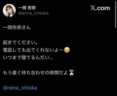 一岡伶奈さん、寝坊