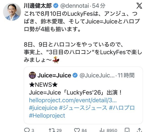川邊健太郎「8月8日と9日にハロコンやります」