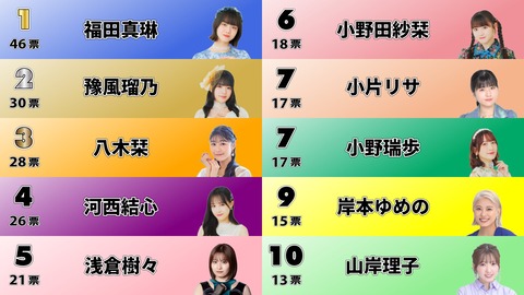 つばきファクトリー楽曲大賞、推しメン部門順位発表